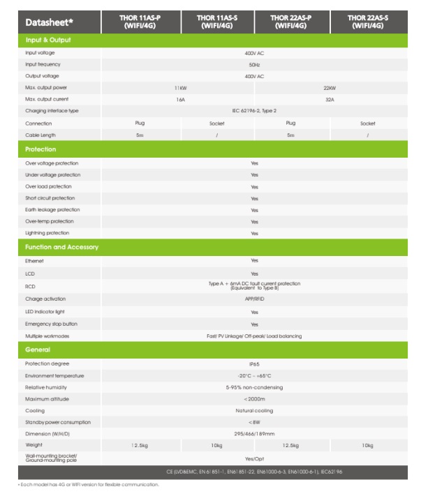 - Trifásicos: THOR 22AS-P: 22 kW, 32A.